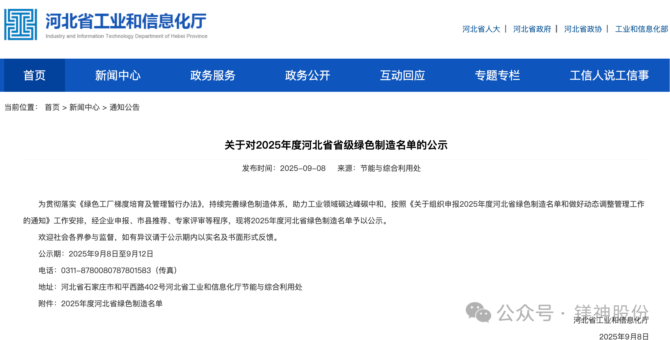 喜報(bào)!鎂神科技入選2025年度河北省綠色制造名單