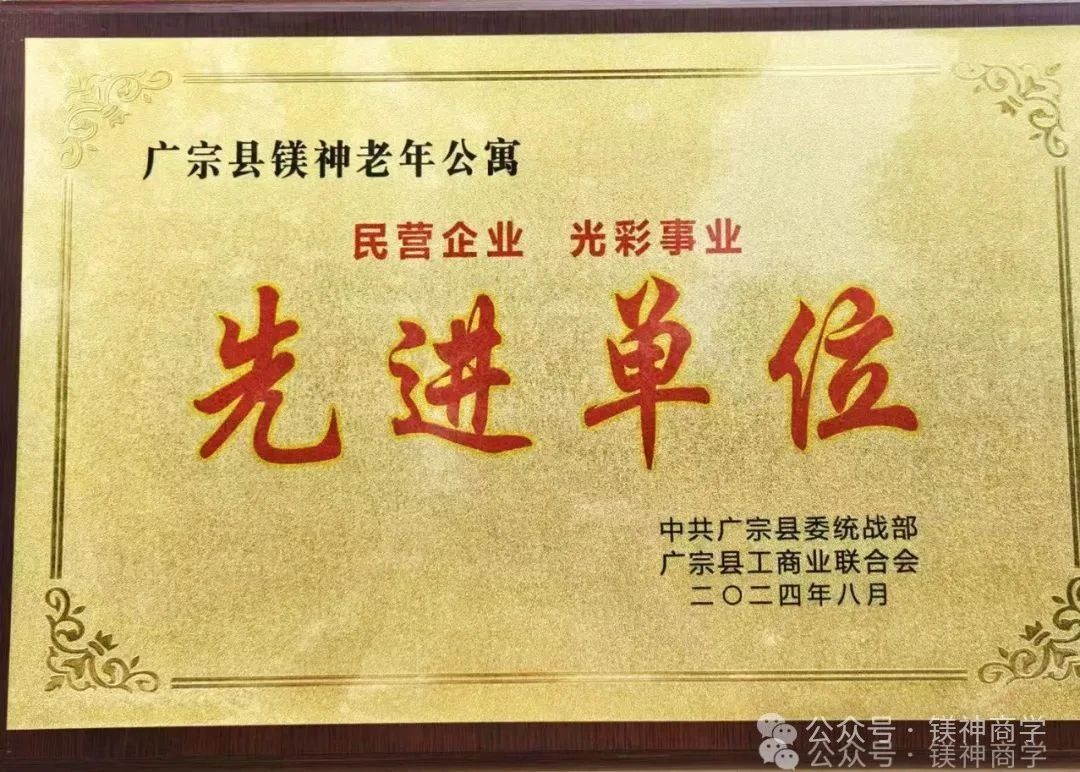 孫文董事長的善舉得到了社會各界的廣泛贊譽(yù)與認(rèn)可。為表彰他在公益事業(yè)上的杰出貢獻(xiàn),中共廣宗縣委統(tǒng)戰(zhàn)部與廣宗縣工商業(yè)聯(lián)合會聯(lián)合授予廣宗縣鎂神老年公寓“民營企業(yè)光彩事業(yè)先進(jìn)單位”的榮譽(yù)稱號,并頒發(fā)慰問品,以示鼓勵(lì)與肯定。這份榮譽(yù)的獲得,不僅是對孫文董事長個(gè)人及公寓團(tuán)隊(duì)的極大鼓舞,更是對全社會投身公益事業(yè)的一種正向激勵(lì)與引導(dǎo)。