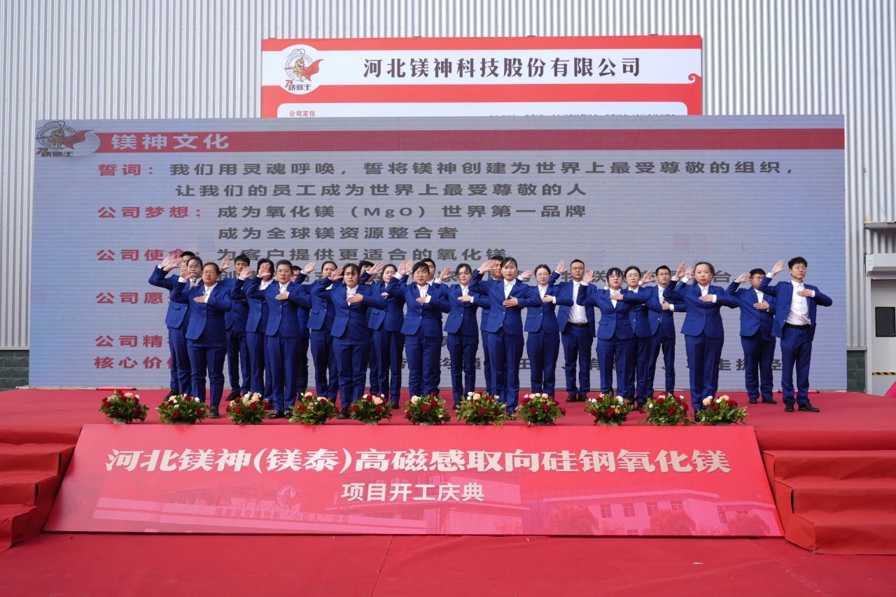 2024年10月19日,河北鎂神科技股份有限公司(以下簡(jiǎn)稱“鎂神科技”)在廣宗工廠隆重舉行“河北鎂神(鎂泰)高磁感取向硅鋼氧化鎂項(xiàng)目開工儀式”,并于當(dāng)天下午舉辦了技術(shù)交流會(huì)。此次活動(dòng)匯聚了來(lái)自政府、行業(yè)協(xié)會(huì)、科研機(jī)構(gòu)及企業(yè)的眾多領(lǐng)導(dǎo)、專家和合作伙伴的熱情參與,共同見(jiàn)證中國(guó)硅鋼級(jí)氧化鎂歷史上一里程碑時(shí)刻。