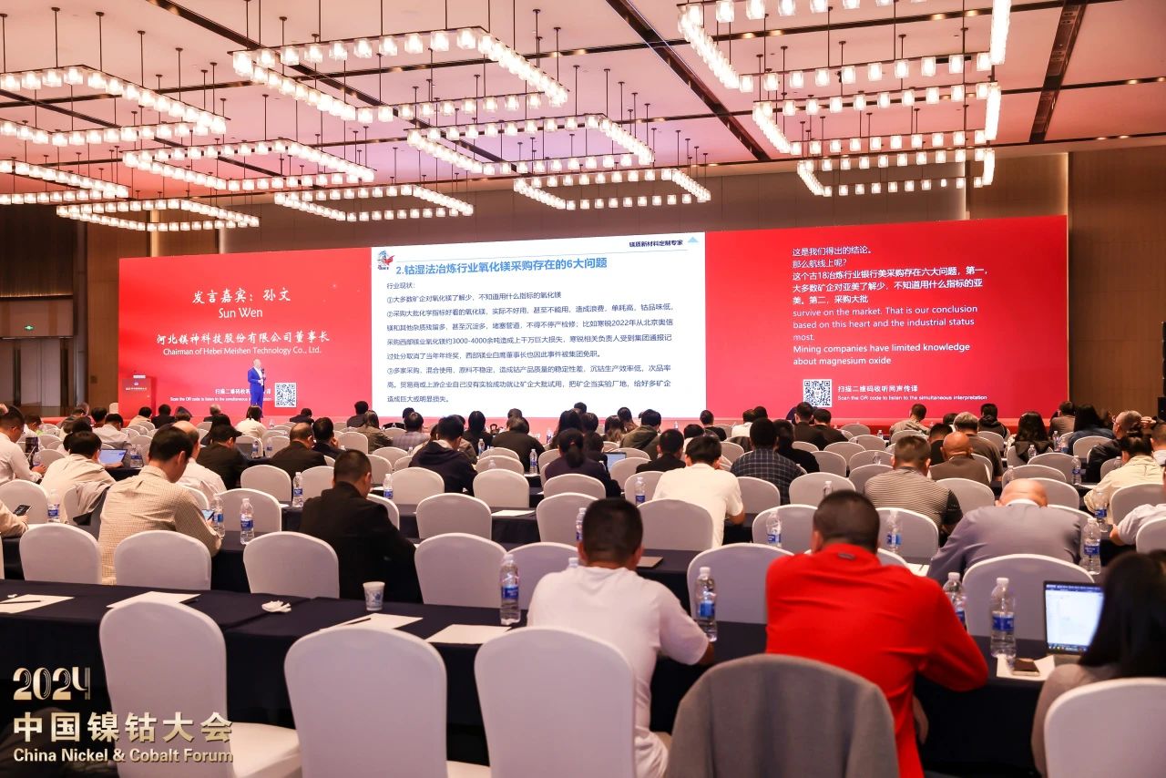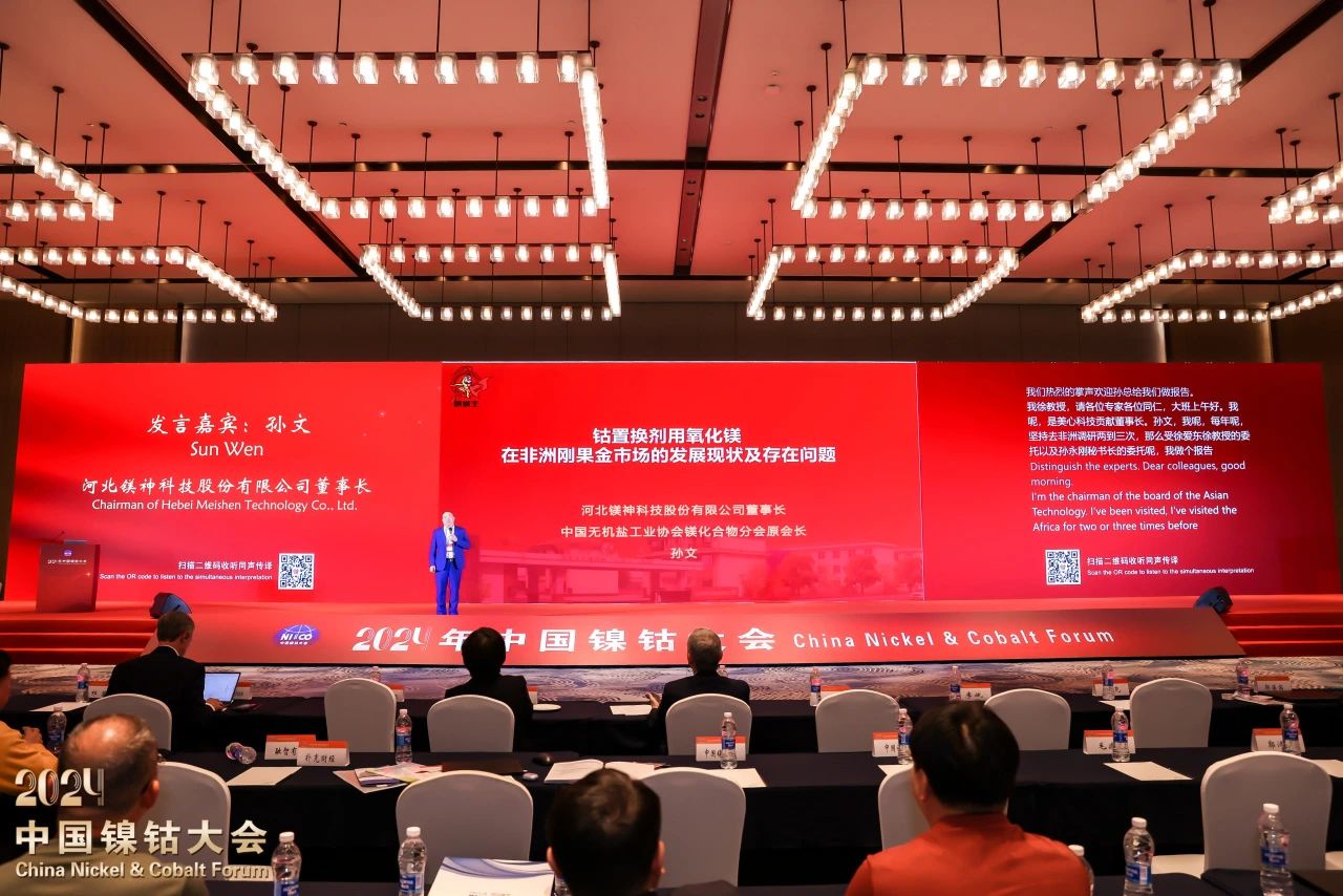 在這場(chǎng)聚焦“以新質(zhì)生產(chǎn)力激發(fā)鎳鈷行業(yè)高質(zhì)量發(fā)展新動(dòng)能”的盛會(huì)上,河北鎂神科技股份有限公司董事長(zhǎng)孫文先生作為嘉賓受邀出席并發(fā)表了題為《鈷置換劑用氧化鎂在非洲剛果金市場(chǎng)的發(fā)展現(xiàn)狀及存在問題》的主題報(bào)告,為與會(huì)者帶來了深刻洞察與前瞻思考,贏得了現(xiàn)場(chǎng)陣陣掌聲。